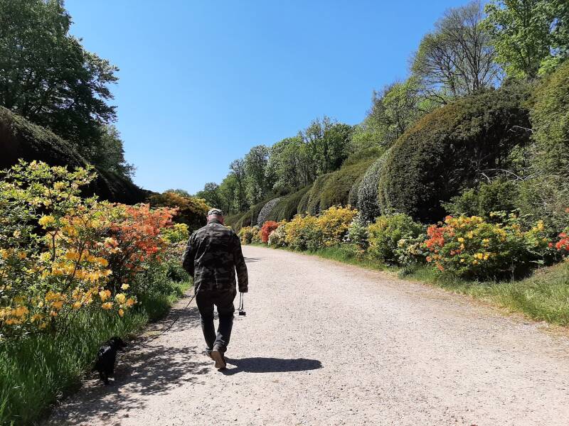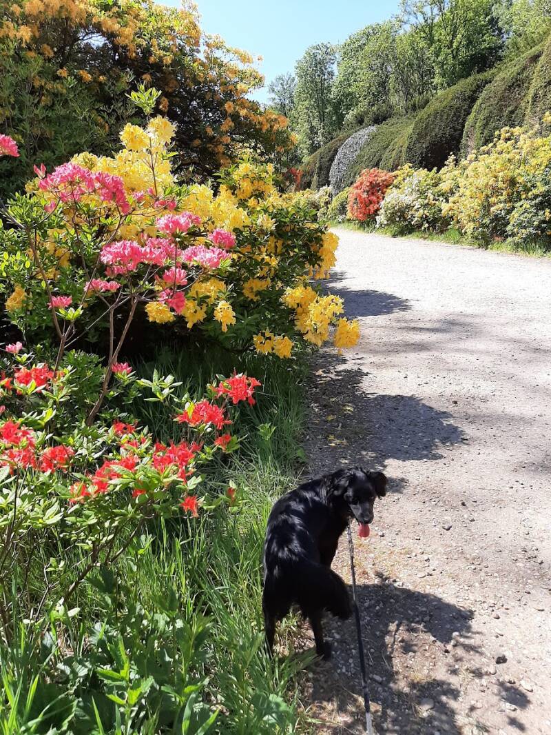 Mijn ouders hebben een aantal jaar in Doorwerth gewoond naast een bos wat grenst aan Landgoed de Duno . Ieder jaar bloeien daar eind april, begin mei de azalea's . Een prachtige laan met een en al kleur en daarachter hele hoge geschoren hagen. Ieder jaar proberen we op het juiste moment daar te zijn , liefst niet in het weekend want meer mensen kennen dit schitterende plekje. Dit jaar zijn we daar op 9 mei met Layla naar toe gegaan en weer genoten van de schitterende kleuren ,we waren op tijd want door de warmte van de afgelopen dagen was het hoogtepunt van de bloei alweer voorbij.