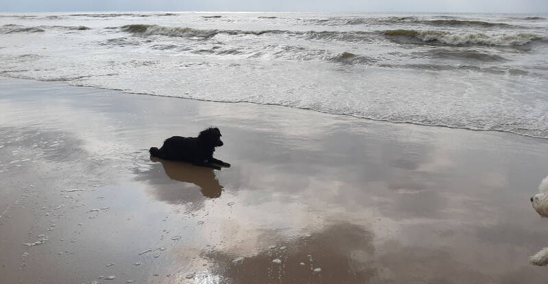 Nou ze vind het geweldig , al snel vertrouwen we haar genoeg om haar los te laten. Ze gaat naar iedere hond die ze ziet toe , een paar meter daarvoor gaat ze liggen en wacht af tot ze besnuffeld wordt en dan komt ze omhoog en wil het liefste racen!