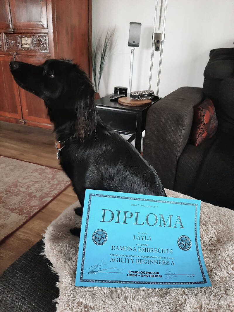 Omdat ik toch wat meer uitdaging zoek voor Layla , ga ik op zoek naar een cursus in de buurt . Moeilijk te vinden want ik wil eigenlijk alleen op zondag en niet te ver rijden en ook geen kapitaal betalen. Ik start in oktober met agility (wetende dat mijn conditie te wensen overlaat)